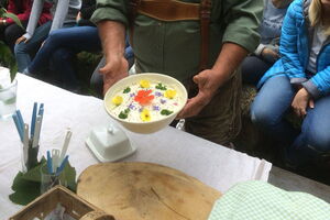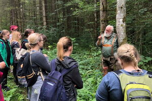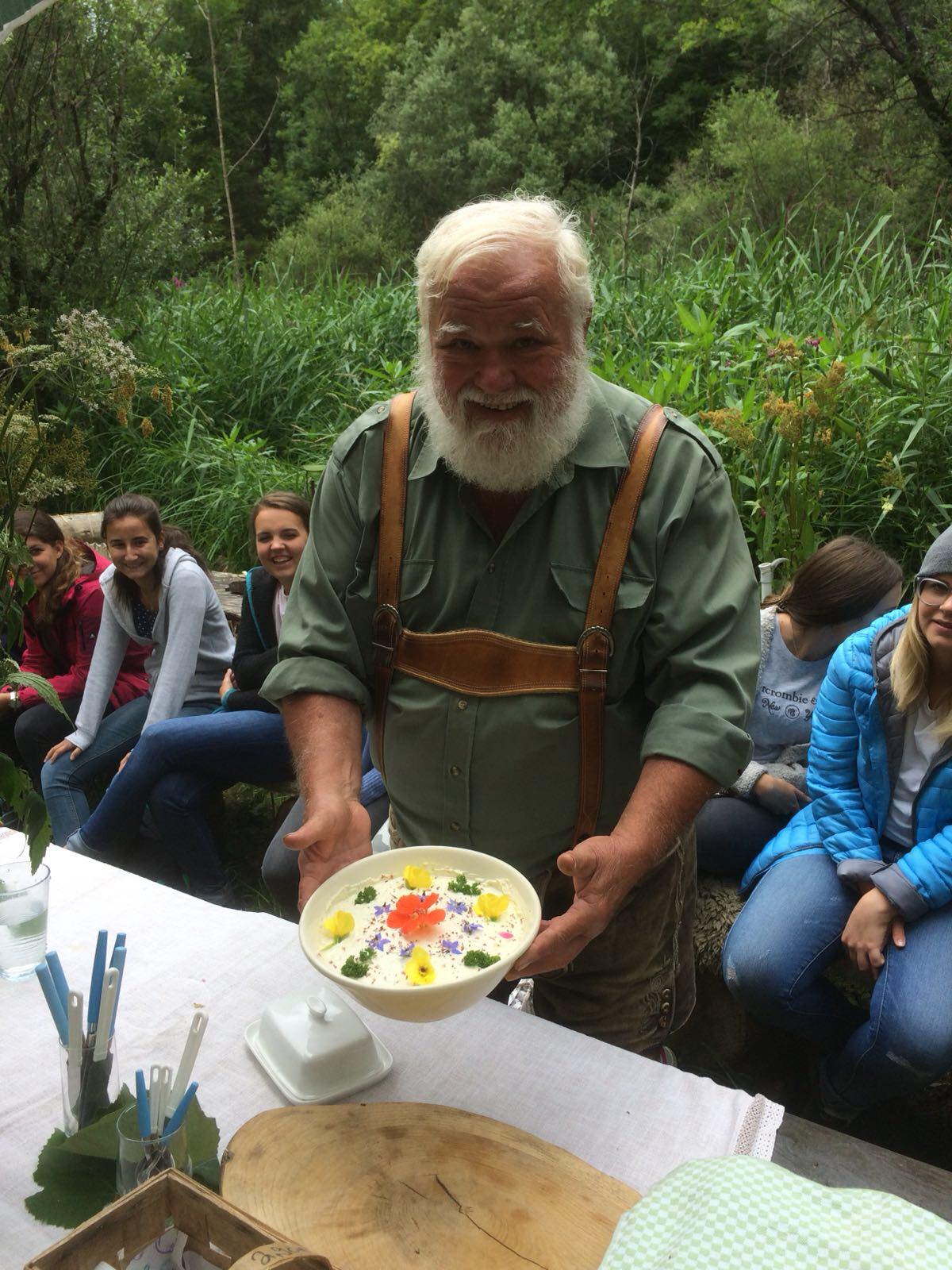 Bevor wir mit der eigentlichen Wanderung begannen, erzählte uns der „Kräuterwastl“ - unter diesem Künstlernamen ist Herr Viellechner bekannt - erst etwas über seine Person und Lebenseinstellung. Schnell wurde uns bewusst, dass er seine Lebensfreude, Warmherzigkeit und Erfahrung zu Kräutern und Naturheilkunde in vollster Überzeugung lebt und liebend gerne an uns weiter gibt.
