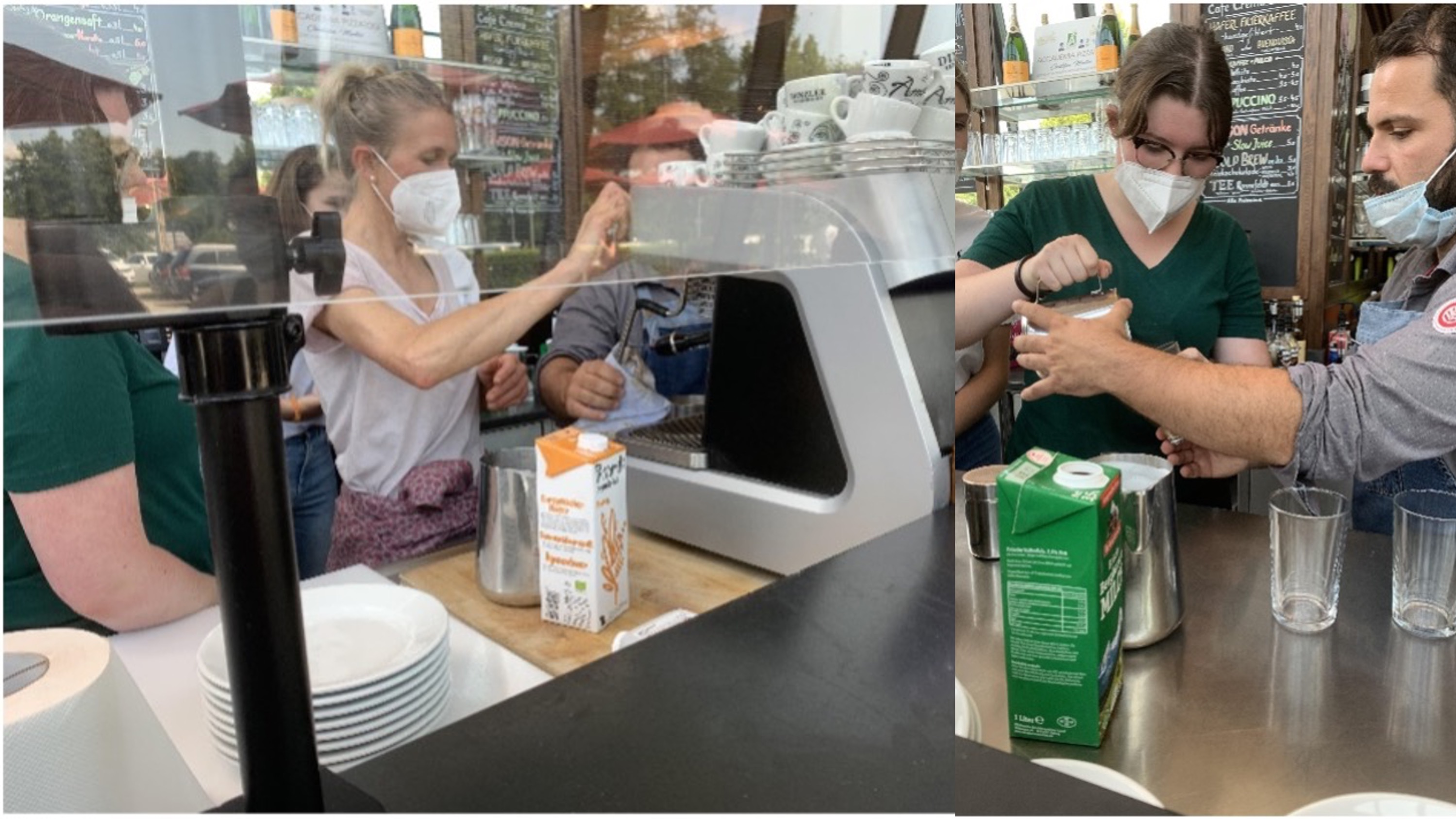 Mit theoretischen Kenntnissen im Gepäck durften wir unser Geschick als Baristas beweisen. Wir bereiteten unsere Lieblingskaffeespezialitäten unter Anleitung selbst zu (siehe Fotos). Ein Gratisgetränk auf der Sonnenterrasse rundete diese Betriebsbesichtigung ab, die uns eine weitere Facette der Ausbildungsrichtung eröffnete und uns einen ambitionierten, potentiellen Arbeitgeber kennenlernen ließ.