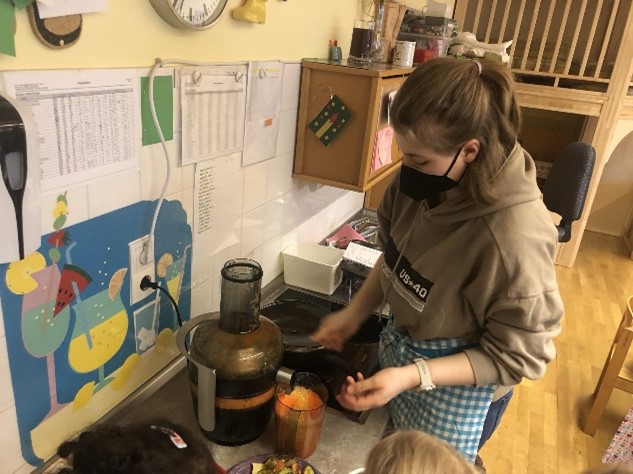 Am Donnerstag, den 17.03.2022 durfte das Modul „Großhaushalt“ der EV 12 unter der Leitung von Frau Nusser und Frau Harbauer den Kindergarten St. Quirin in Holzkirchen besuchen. Ziel war es, den Kleinsten schon die Grundlagen einer gesunden und ausgewogenen Ernährung beizubringen.