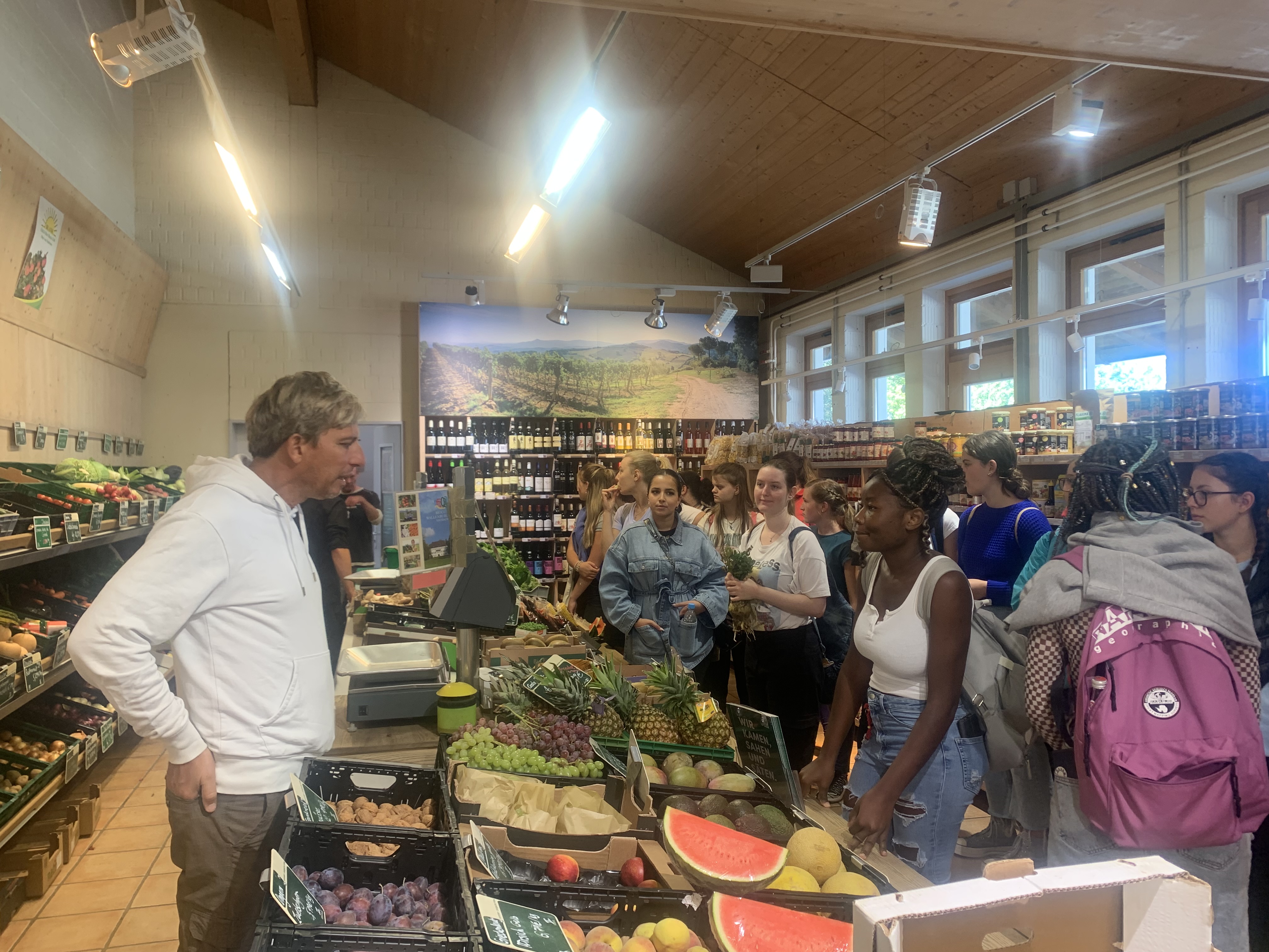 Die BFS EV11 hat im Rahmen des Wandertages das Biogut Wallenburg besichtigt. Bei der Führung konnten die Schüler auf den Feldern und in den Gewächshäusern erleben, wie die Lebensmittel angebaut werden, die sie im fachpraktischen Unterricht zu leckeren Gerichten verarbeiten werden. Außerdem bekamen sie einen Einblick in die wohldurchdachte Organisation der Packstation und durften im Laden frisches Bioobst probieren.